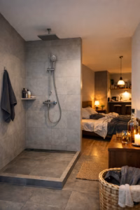 - Meine Wohnung hatte eine offene Dusche – typisch für den Single, keine Türen, keine Geheimnisse.